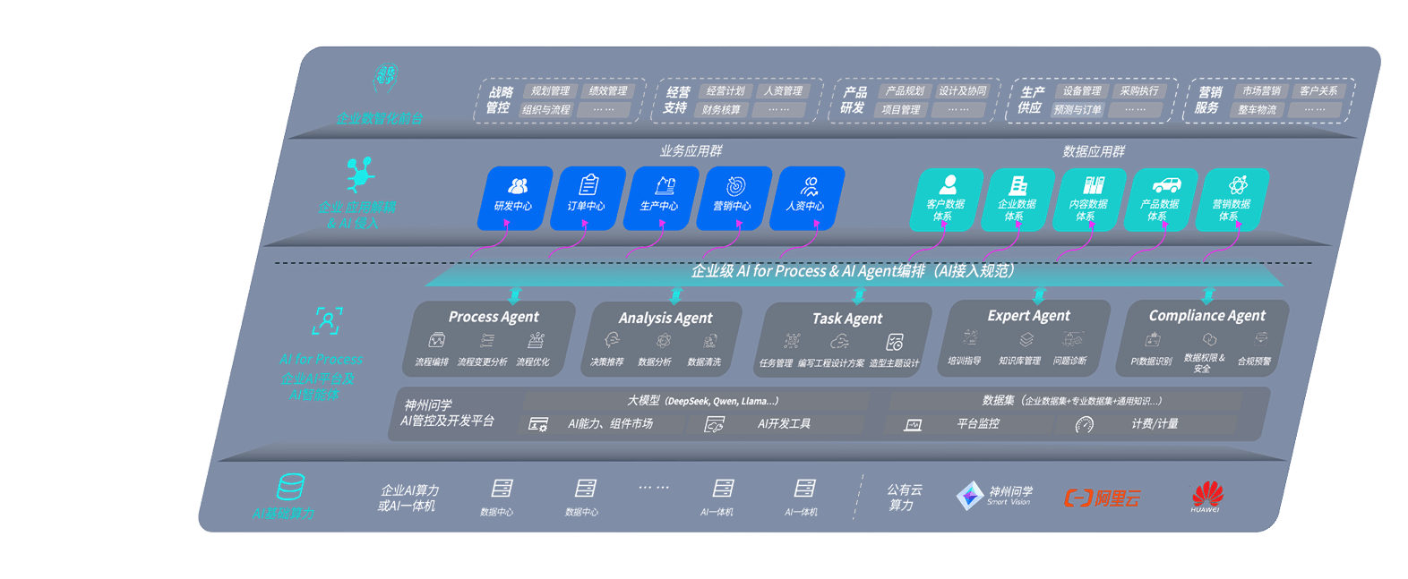 欧陆娱乐问学智车解决方案是一套基于AI技术的汽车行业智能化系统,,覆盖从底层算力到顶层AI应用的全栈方案。。方案由算力层、、、模型层和应用层组成:算力层,,,方案支持多种一体机配置,,具备云端灵活部署、、多云适配以及动态优化计算资源的能力;模型层,,欧陆娱乐问学平台版提供了企业级AI应用一站式构建与管理平台,,支持基于后训练强化技术的汽车企业专属模型的训练、、、评测和运营;应用层,,,欧陆娱乐问学DeepSeek版提供包括超级员工、、、智能招采、、、、智能营销、、智能客服、、、、AI for BI等一系列解决方案,,可助力汽车行业实现数字化转型,,,让管理更智能、、响应更敏捷。。。。